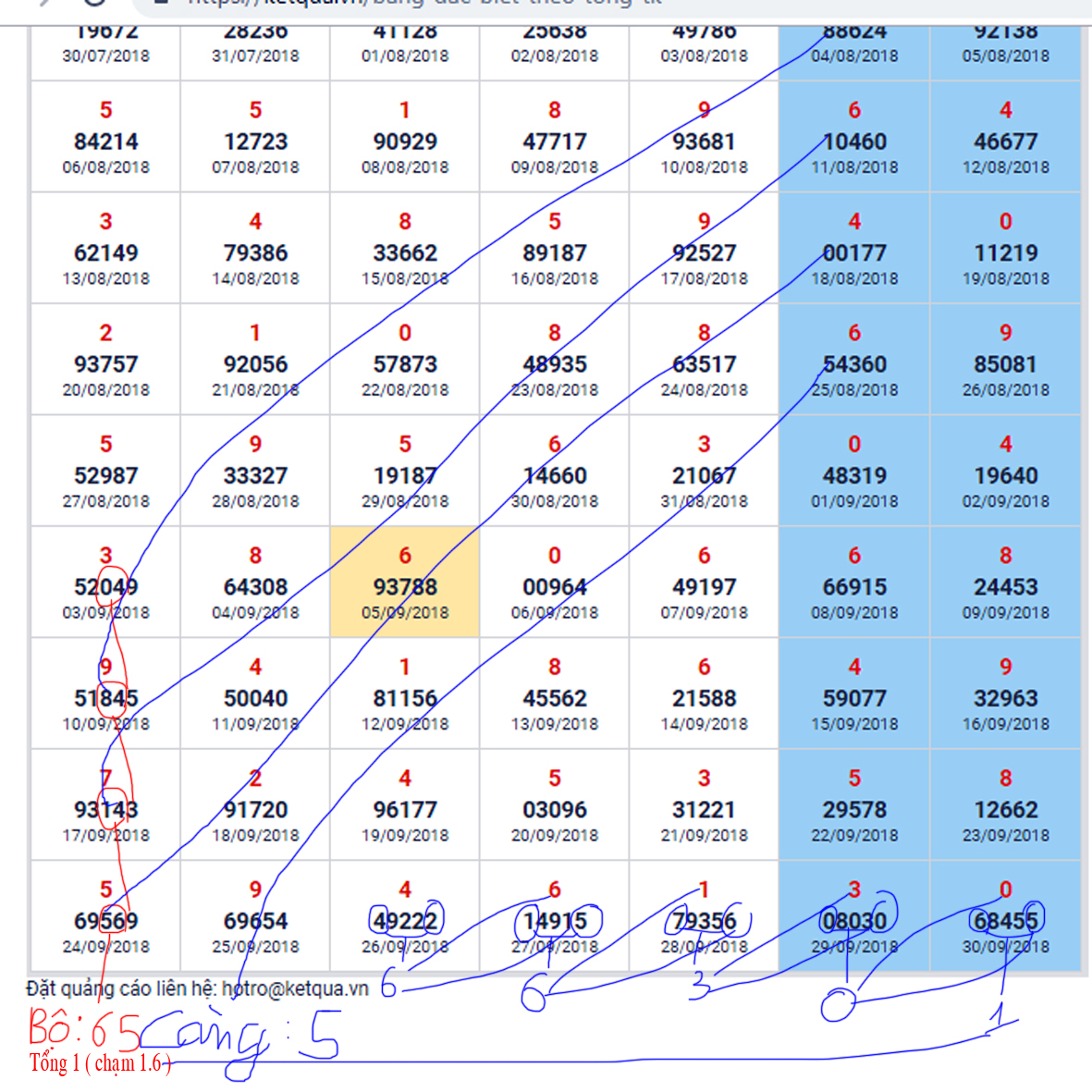 CẦU LOTTO - CẦU ĐB NGÀY 01/10/2018