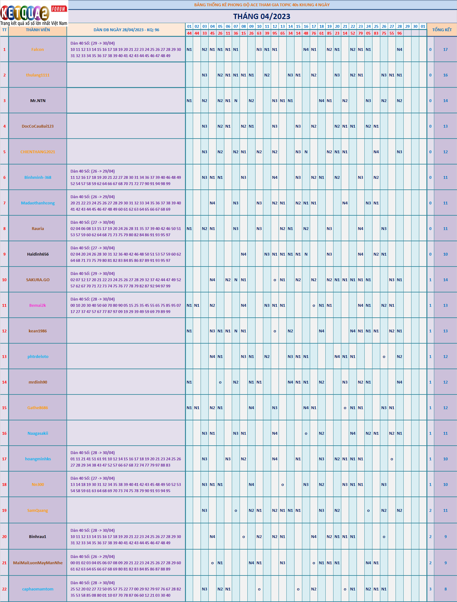 CHĂN DÀN ĐẶC BIỆT XSMB 40s KHUNG 4 THÁNG 4/2023