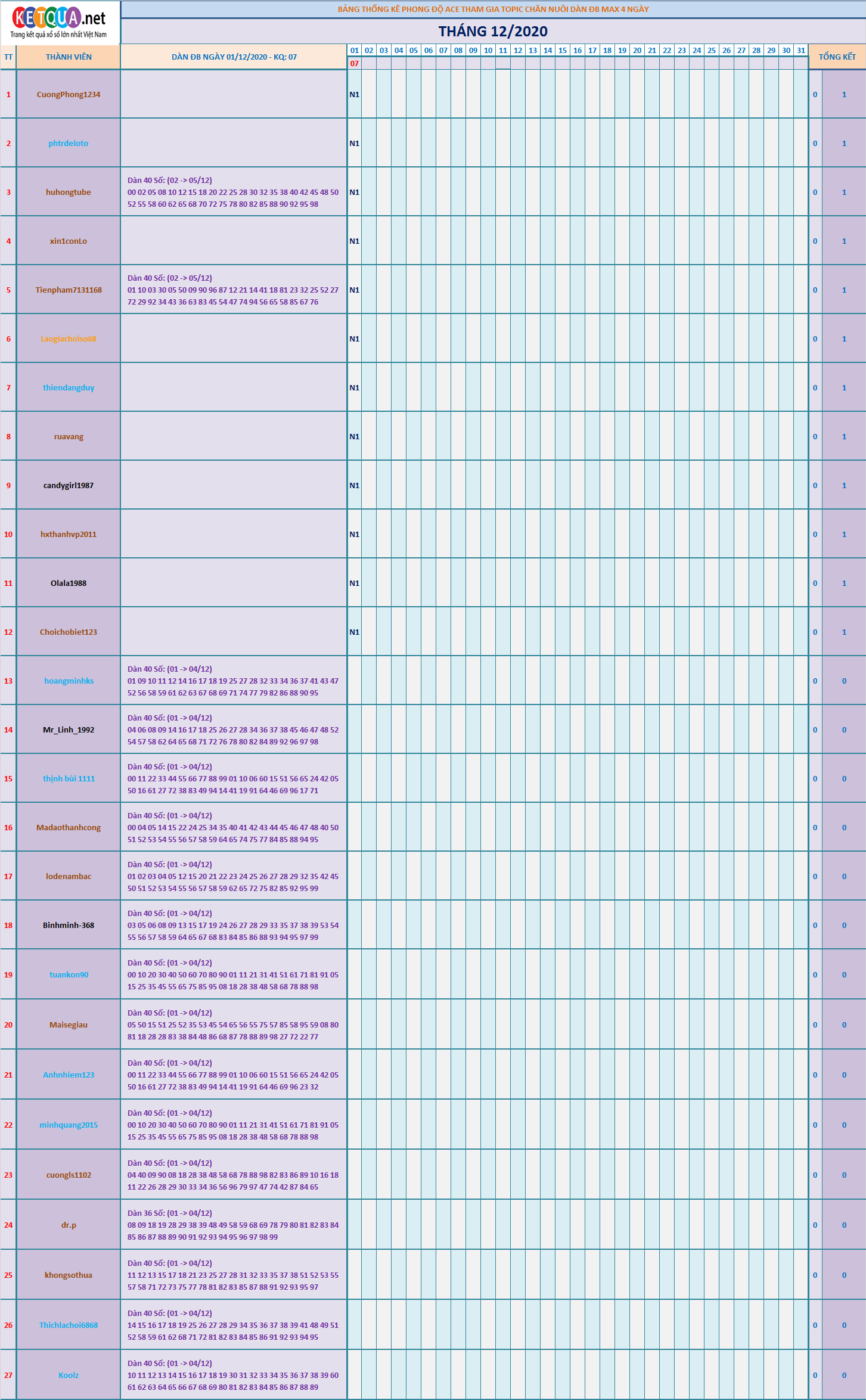 CHĂN DÀN ĐẶC BIỆT XSMB KHUNG 4 THÁNG 12/2020