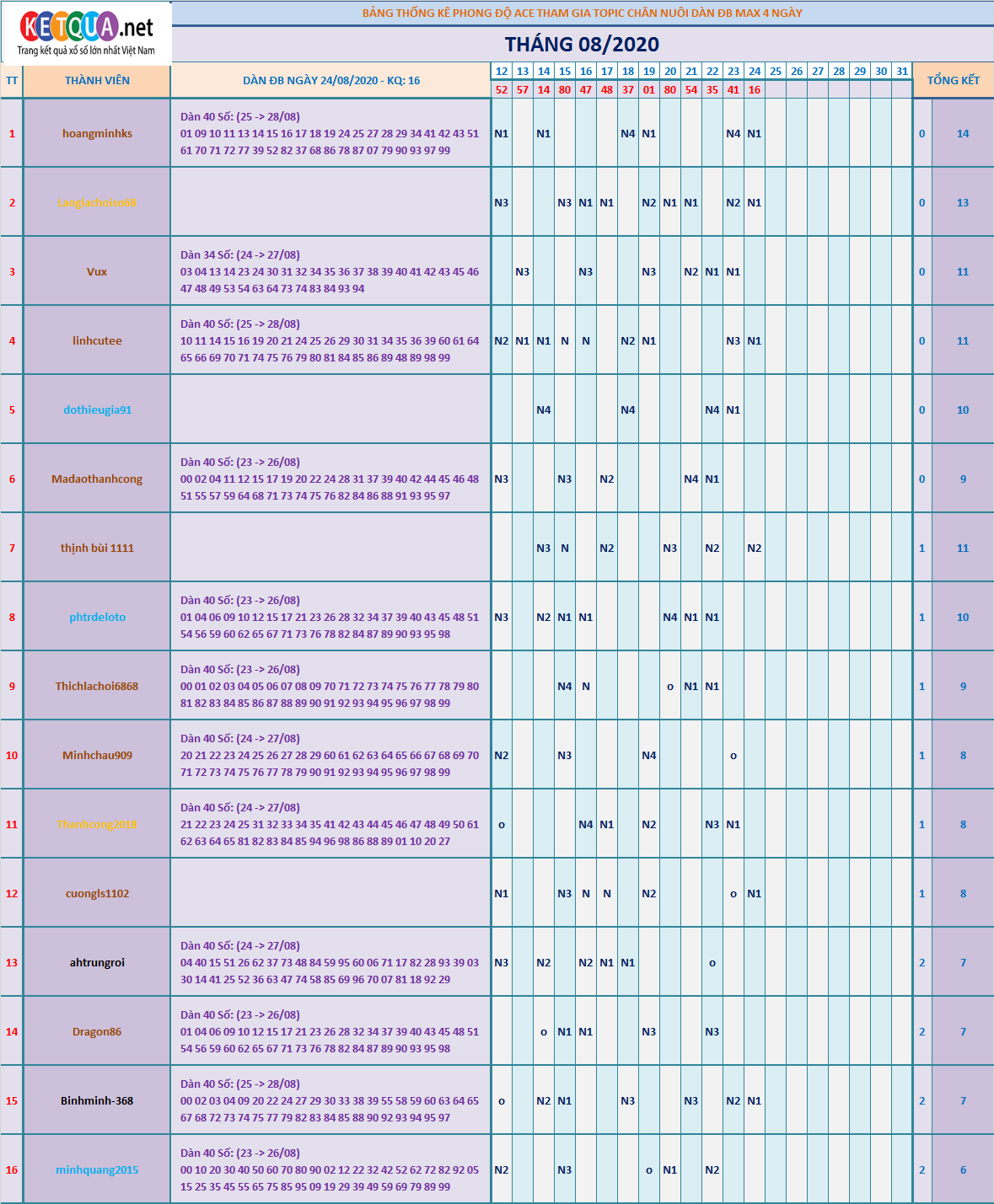 CHĂN DÀN ĐẶC BIỆT XSMB KHUNG 4 THÁNG 8/2020