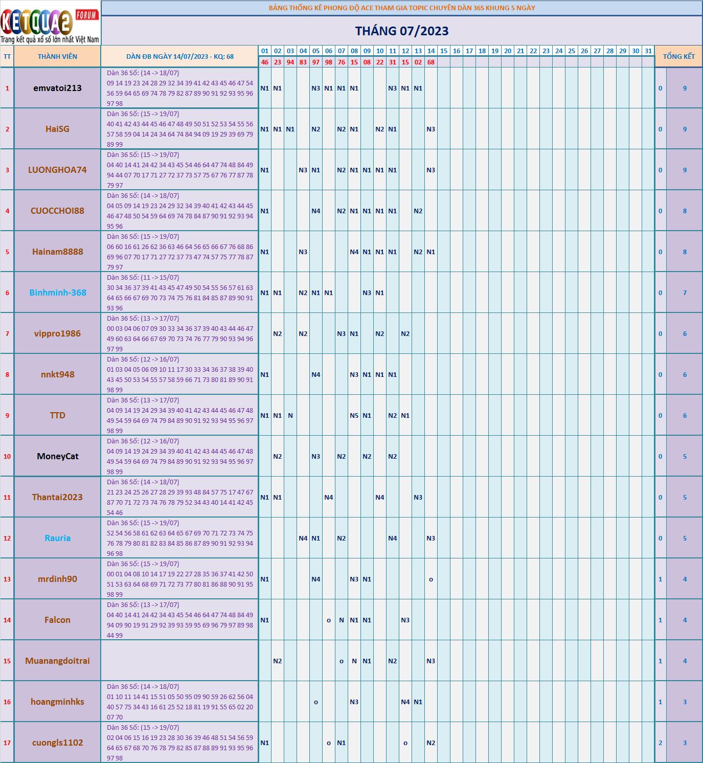 CHĂN NUÔI DÀN ĐỀ 36s KHUNG 5 NGÀY THÁNG 7/2023