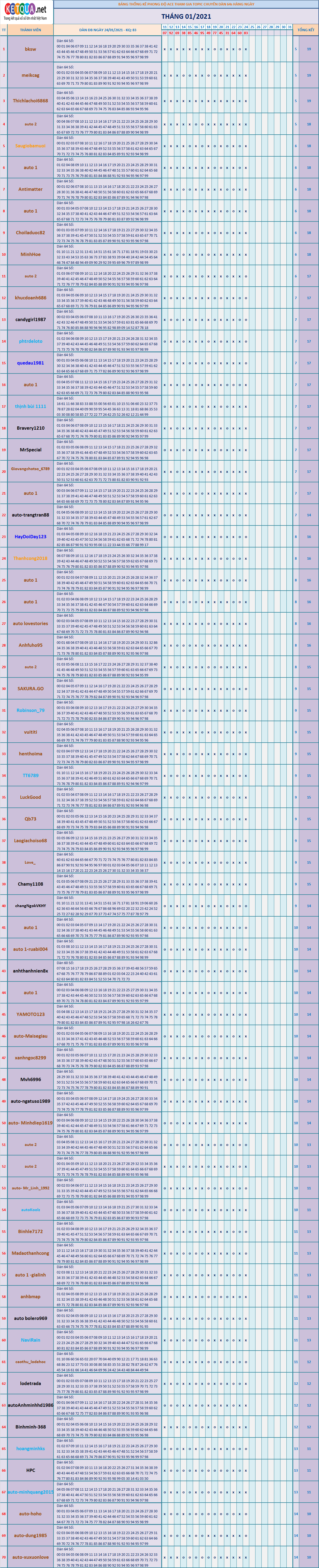 DÀN ĐẶC BIỆT XSMB 64S THÁNG 1/2021