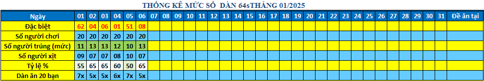 DÀN ĐẶC BIỆT XSMB 64S THÁNG 1/2025