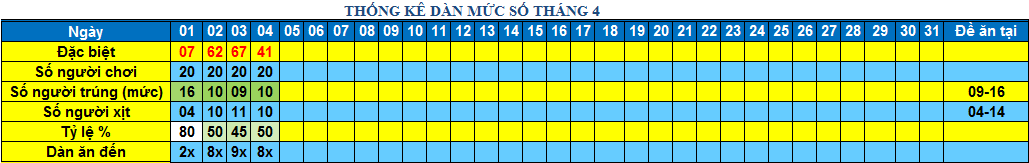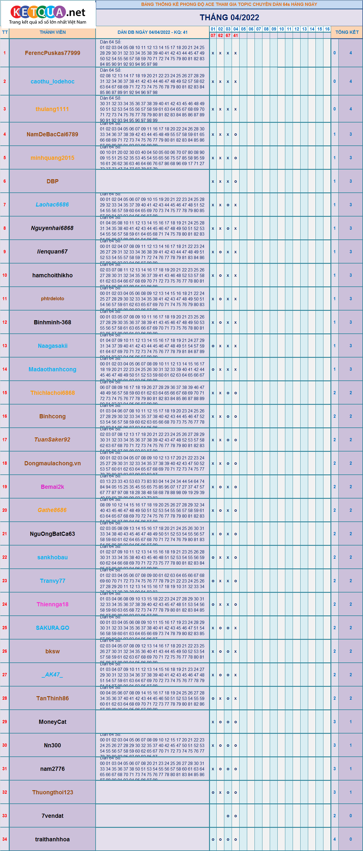 DÀN ĐẶC BIỆT XSMB 64S THÁNG 4/2022