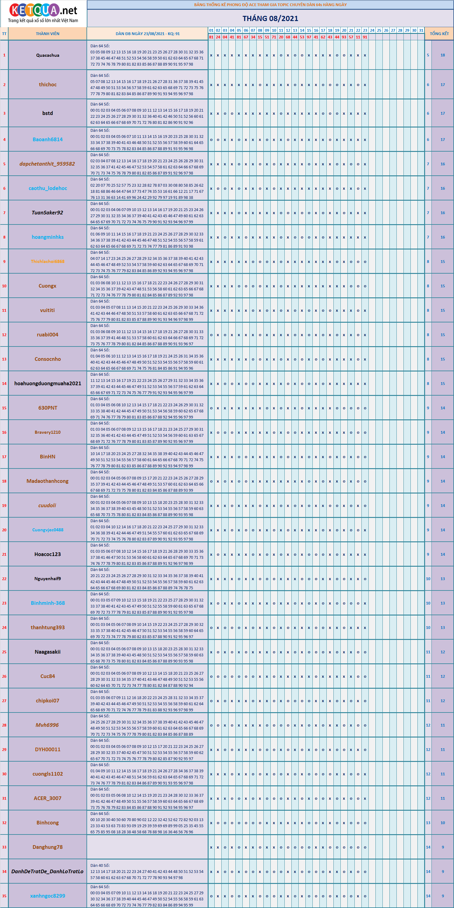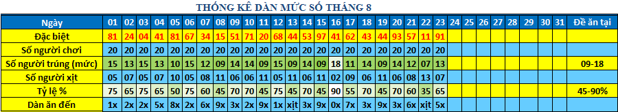 DÀN ĐẶC BIỆT XSMB 64S THÁNG 8/2021