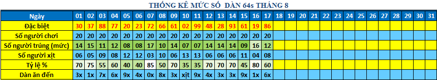 DÀN ĐẶC BIỆT XSMB 64S THÁNG 8/2023