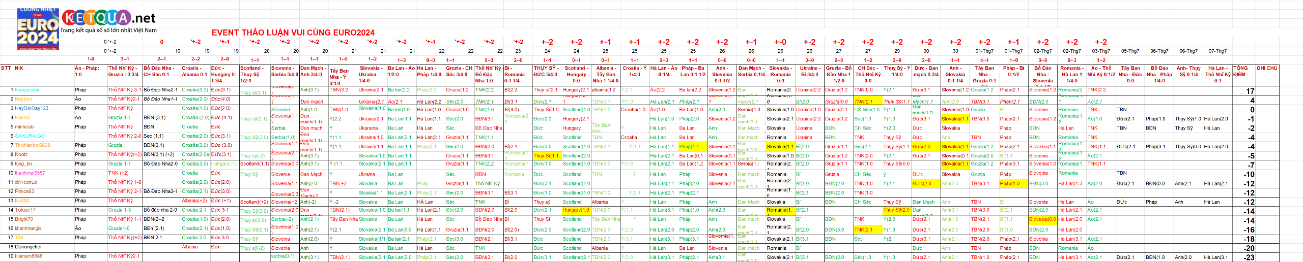 HOT EVENT THI ĐẤU:VUI CÙNG EURO 2024 TỪ 18/06