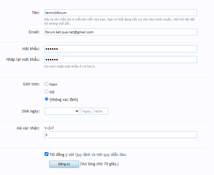 Hướng dẫn lập nick forum