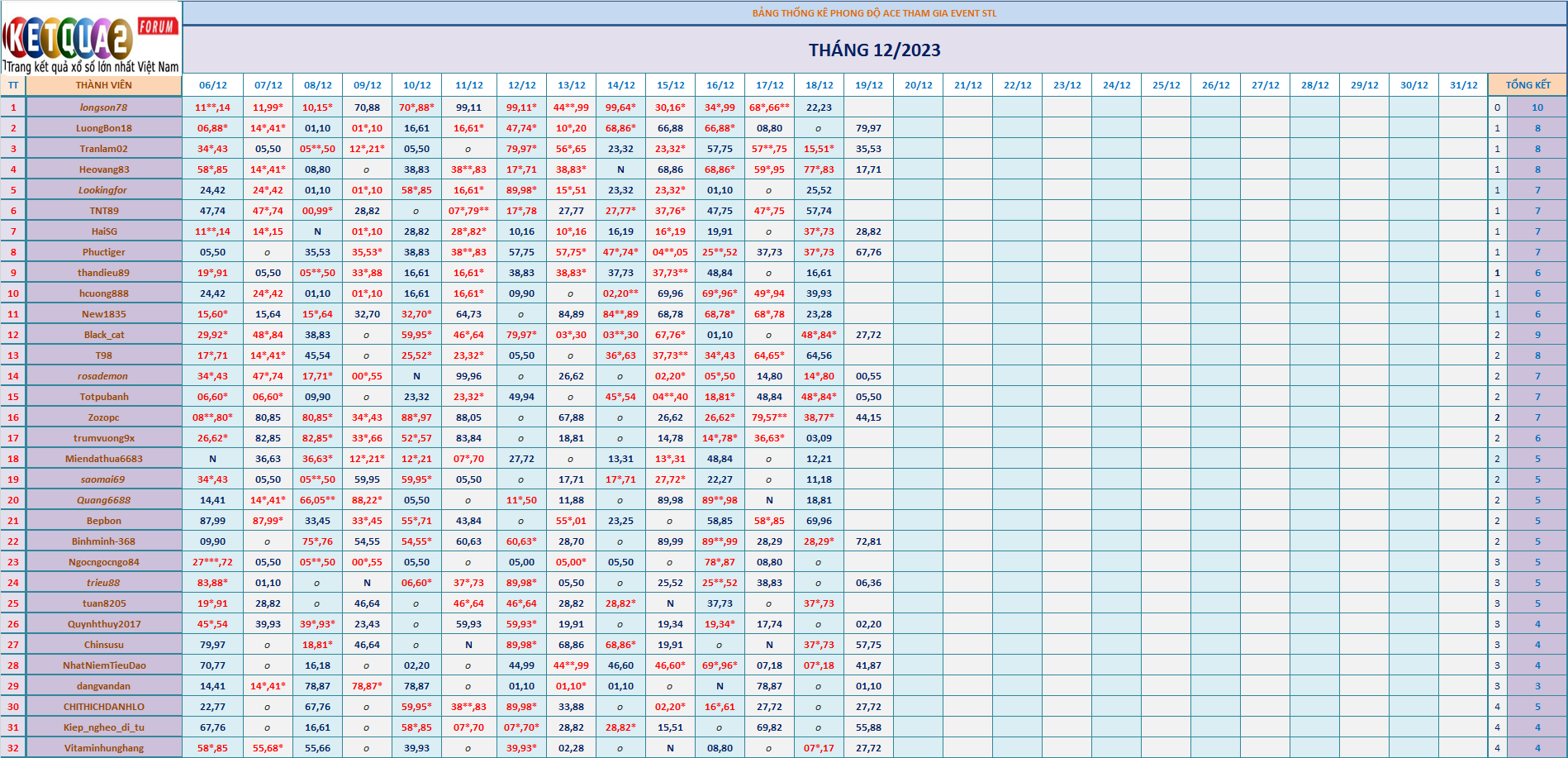 Thảo luận trong 'THẢO LUẬN, DỰ ĐOÁN XSMB' bắt đầu bởi quedau1981, 18/12/23.