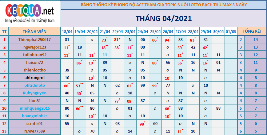 TOPIC CHĂN NUÔI XSMB BTL K3N THÁNG 04/2021