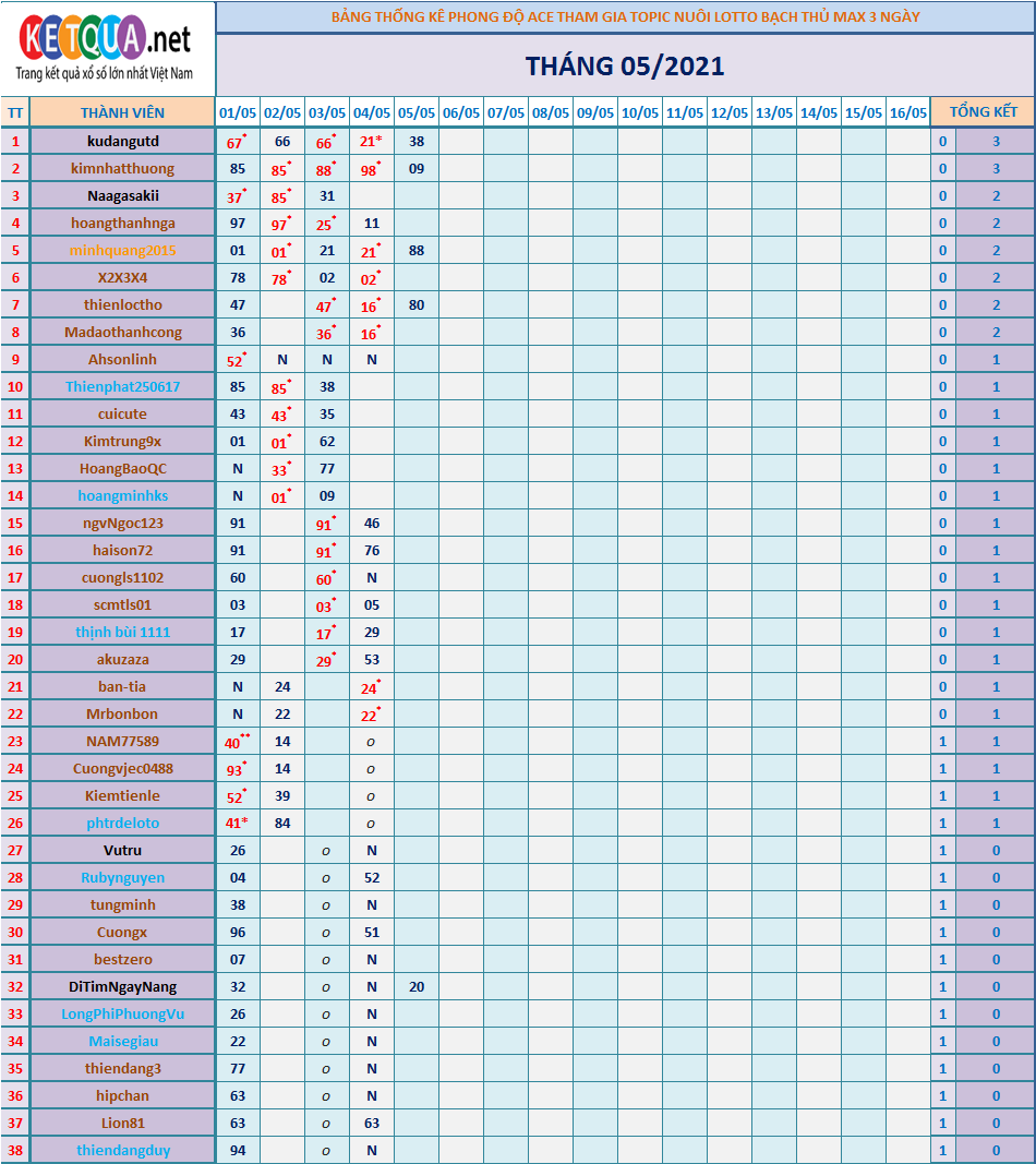 TOPIC CHĂN NUÔI XSMB BTL K3N THÁNG 05/2021
