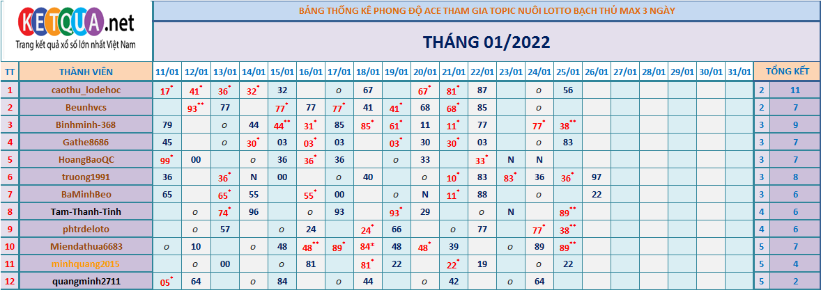TOPIC CHĂN NUÔI XSMB BTL K3N THÁNG 1/2022