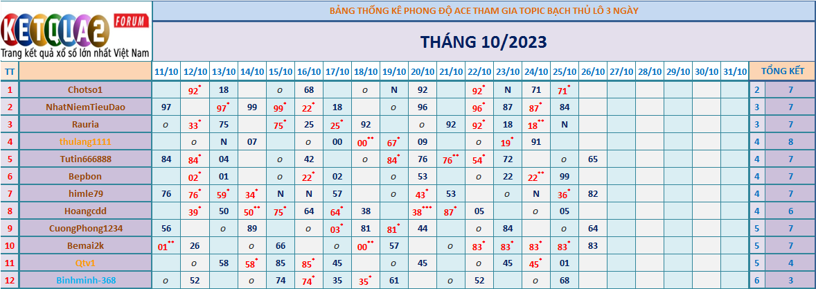 TOPIC CHĂN NUÔI XSMB BTL K3N THÁNG 10/2023