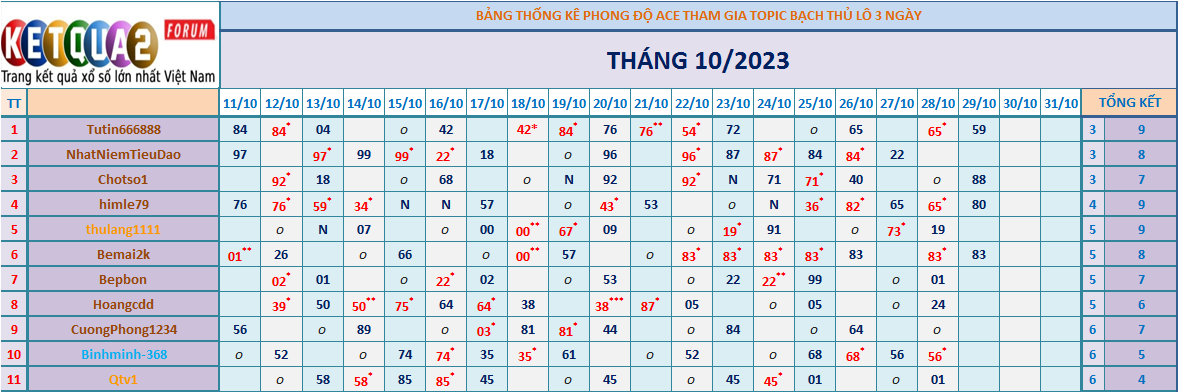 TOPIC CHĂN NUÔI XSMB BTL K3N THÁNG 10/2023