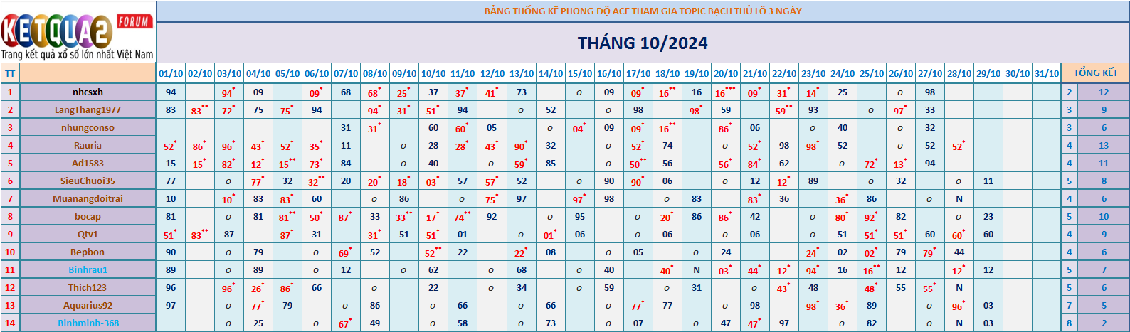 TOPIC CHĂN NUÔI XSMB BTL K3N THÁNG 10/2024