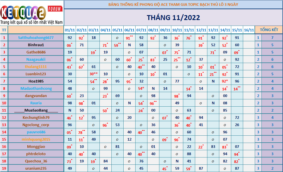 TOPIC CHĂN NUÔI XSMB BTL K3N THÁNG 11/2022