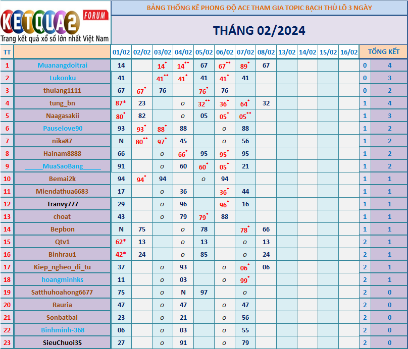 TOPIC CHĂN NUÔI XSMB BTL K3N THÁNG 2/2024
