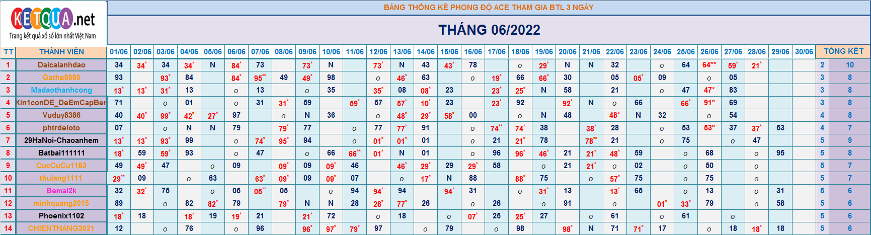TOPIC CHĂN NUÔI XSMB BTL K3N THÁNG 6/2022