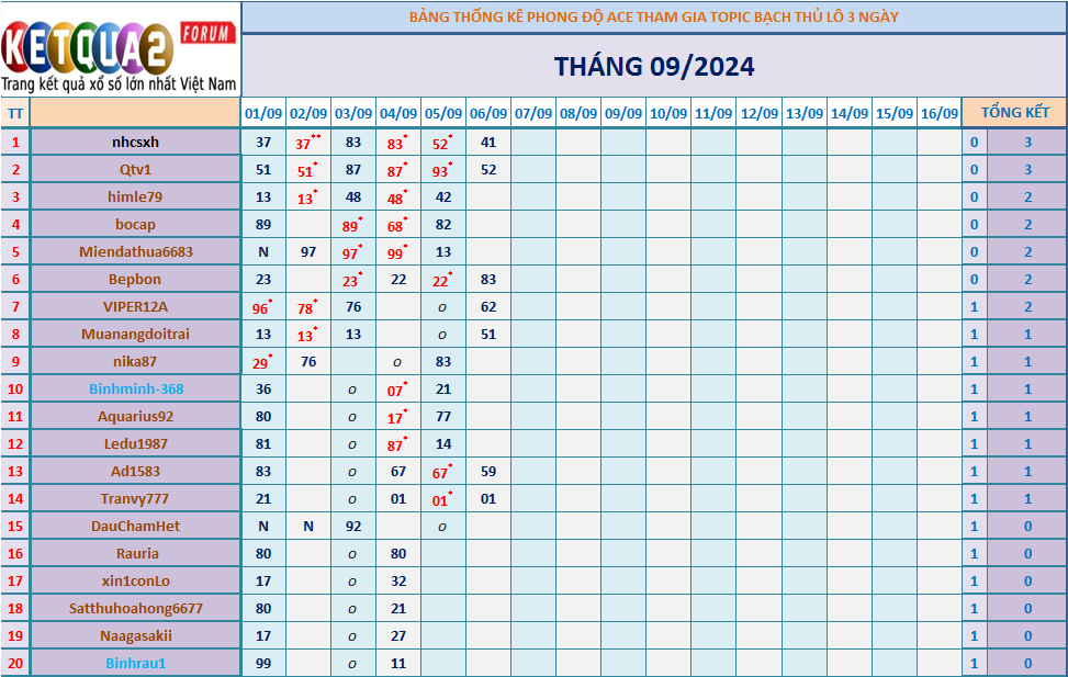 TOPIC CHĂN NUÔI XSMB BTL K3N THÁNG 9/2024