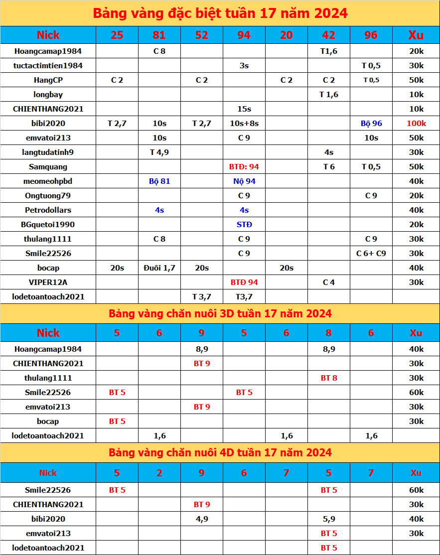CẦU LOTTO - ĐẶC BIỆT TUẦN 18 năm 2024 2D,3D,4D