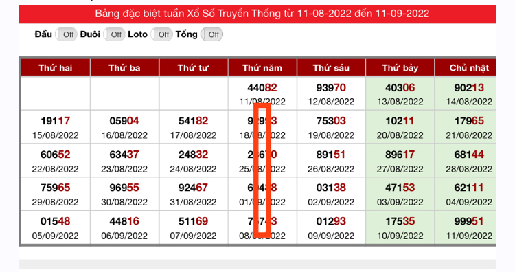 CẦU LOTTO ĐẶC BIỆT TUẦN 38 ( từ 12/09 đến 18/09/2022)