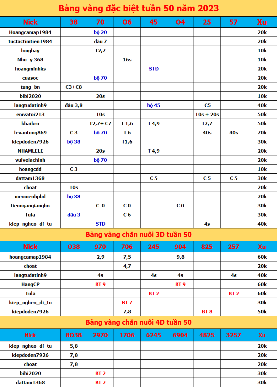 CẦU LOTTO - ĐẶC BIỆT TUẦN 51 2D,3D,4D