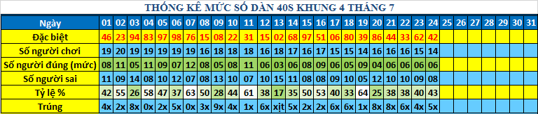 CHĂN DÀN ĐẶC BIỆT XSMB 40s KHUNG 4 THÁNG 7/2023