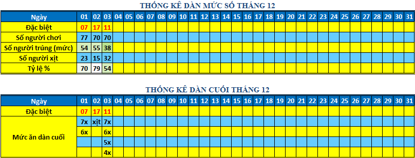 DÀN ĐẶC BIỆT XSMB 64S THÁNG 12/2020