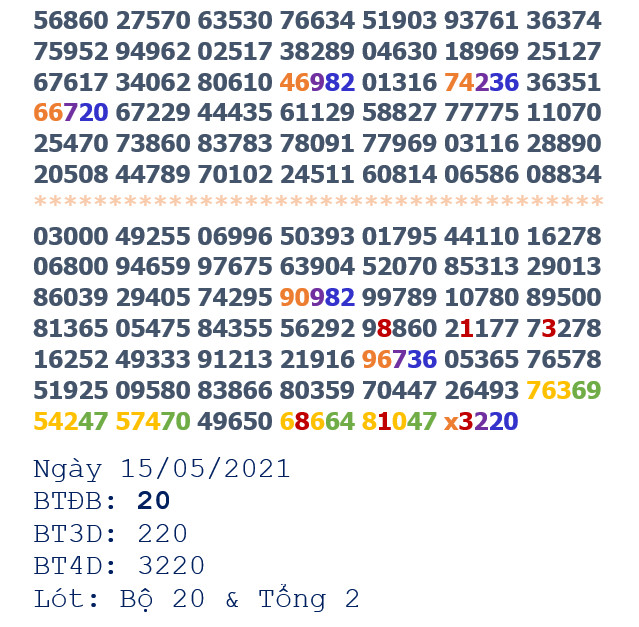 SOI CẦU LOTTO, ĐB XSMB NGÀY 15/05/2021