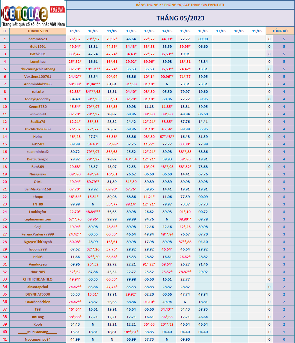 Thảo luận trong 'THẢO LUẬN, DỰ ĐOÁN XSMB' bắt đầu bởi quedau1981, 15/5/23.