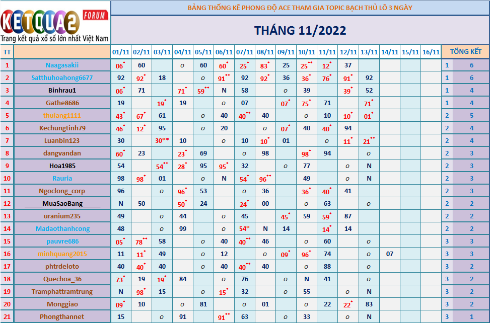 TOPIC CHĂN NUÔI XSMB BTL K3N THÁNG 11/2022