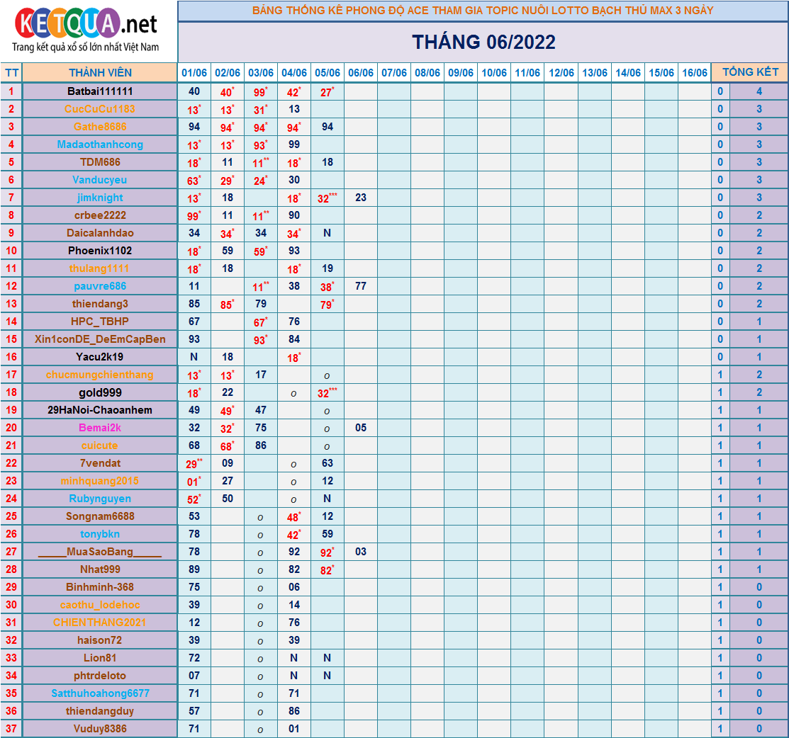 TOPIC CHĂN NUÔI XSMB BTL K3N THÁNG 6/2022